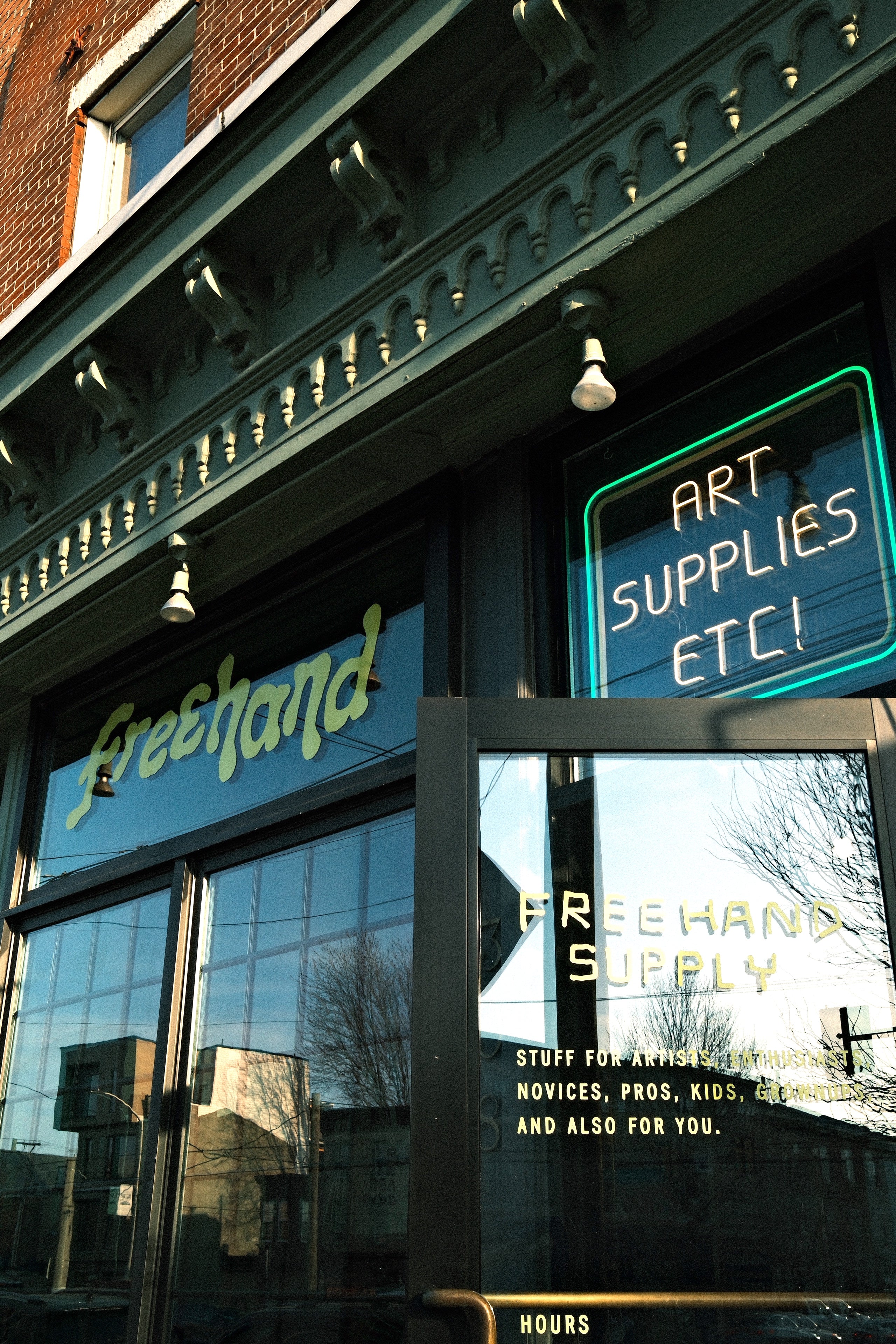 Freehand Art Supply is a small independently owned shop in Fishtown. We carry curated fine art supplies, kids activities, gifts, local artwork, and lots of other fun stuff. Explore our products, see what's currently in our gallery, or find a great class.