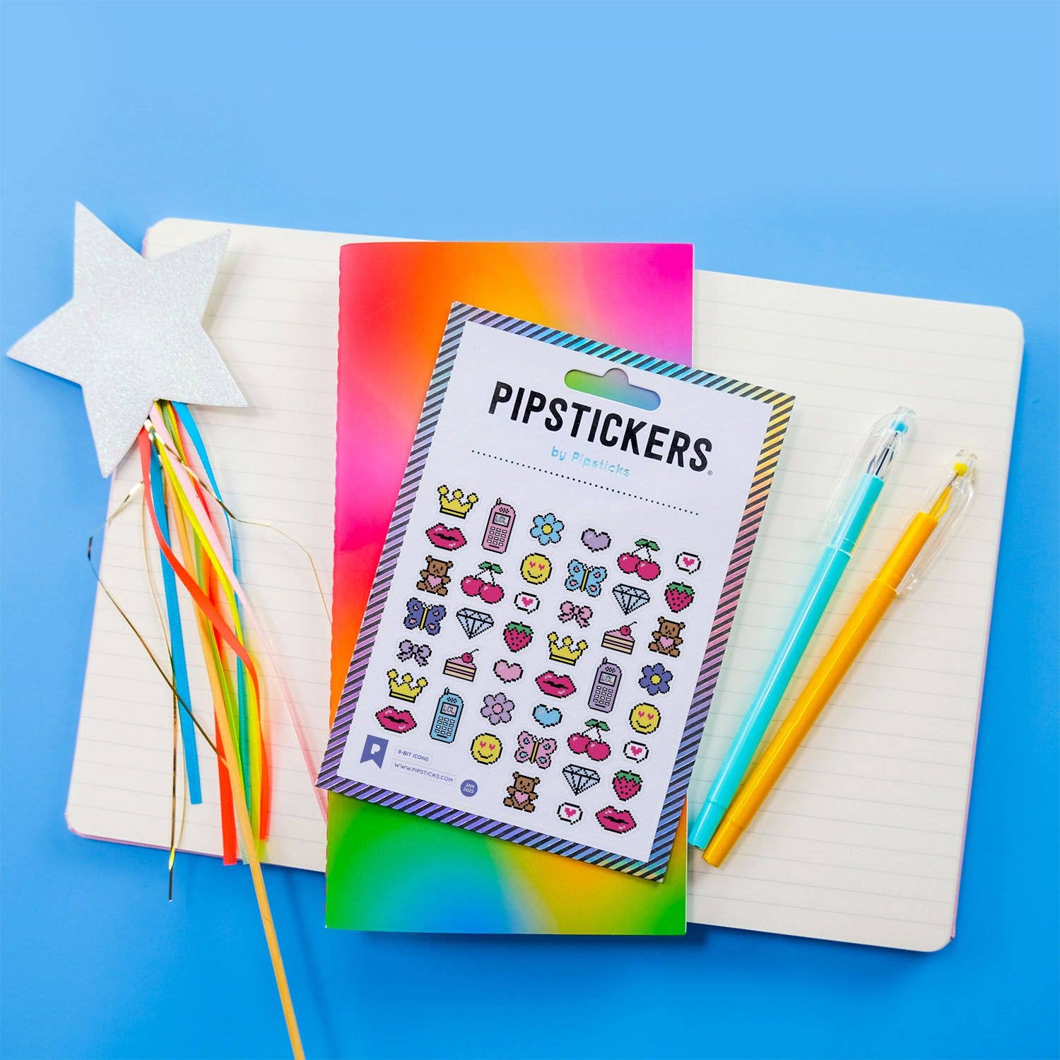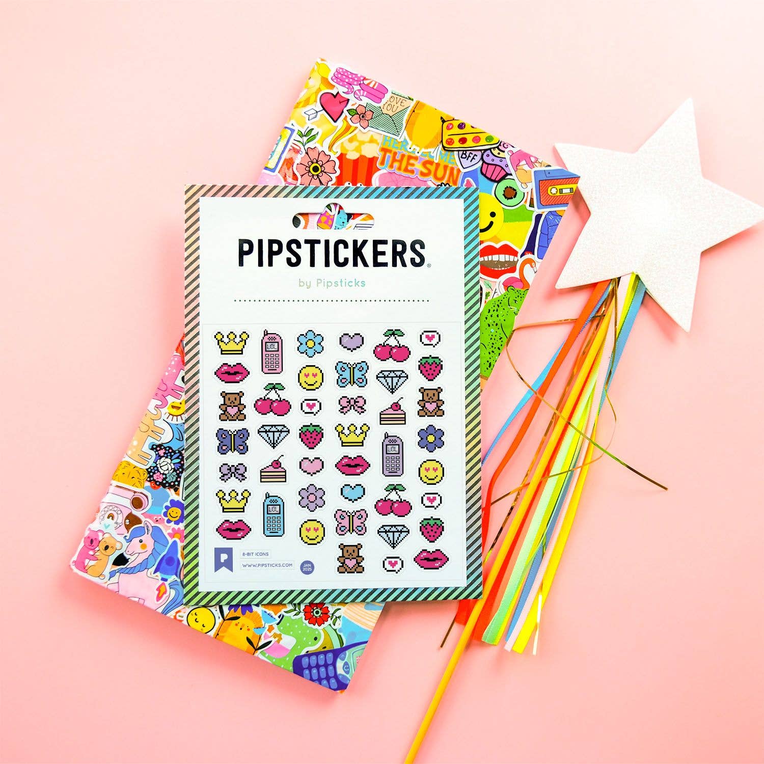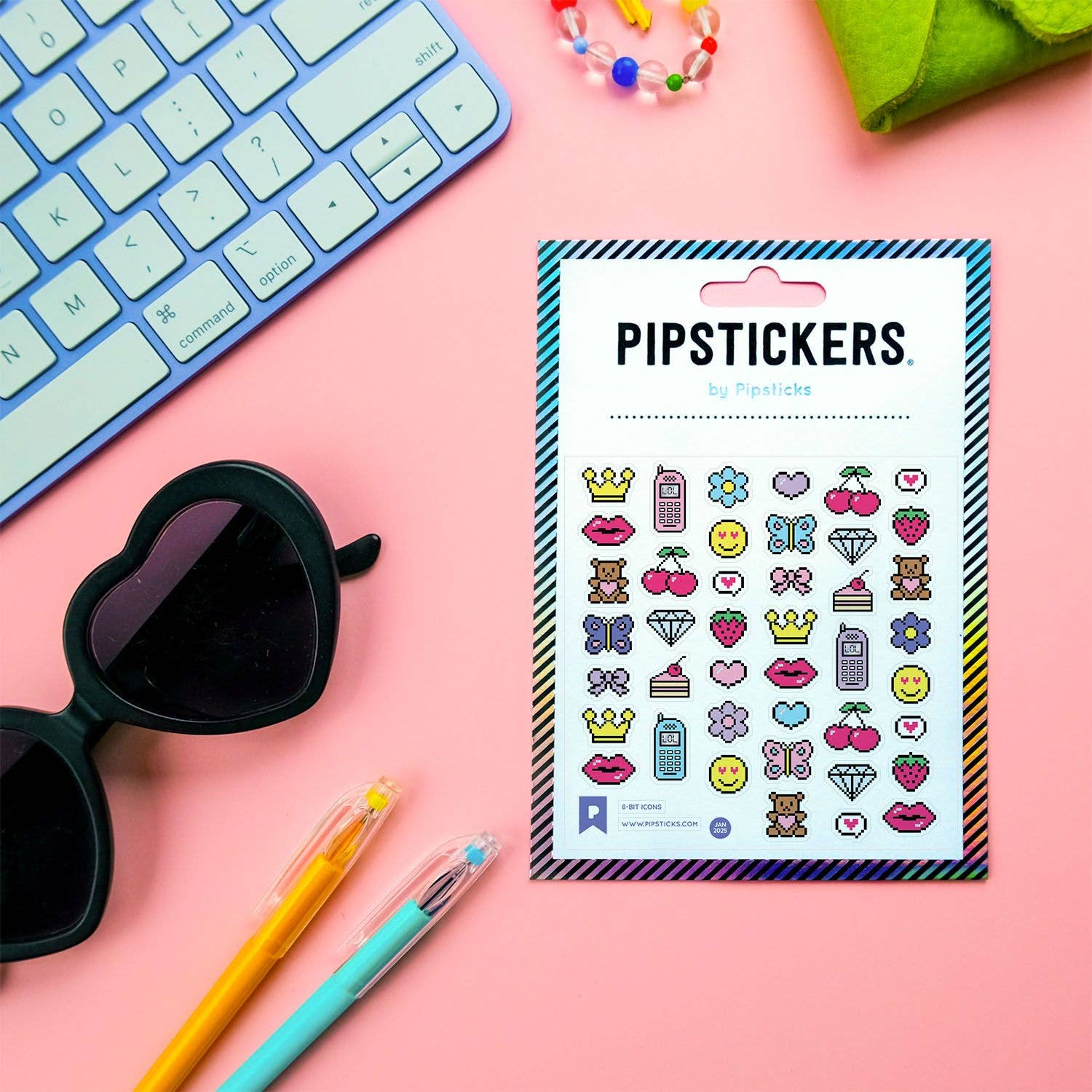 PipStickers are the PERFECT gift for the sticker lover in your life - even if it's you! These unique PVC designs with silver foil accents come on a clear backing and cannot be found anywhere else.Includes one 4'' x 4'' sheet of 8-Bit Icons PipStickers and includes the Pipsticks manifesto.