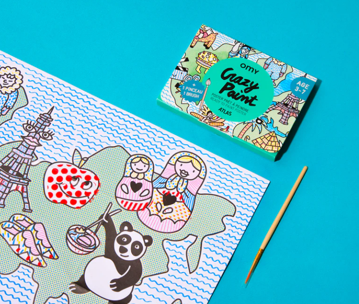 Discover the world's continents with our ready to paint mini poster ! Dip the included paint brush in water and watch the magic happen, paint colors will mix and spread across the amazing scenery ! take it everywhere. Paint dots are printed on paper, use water to wet the brush and create your crazy painting. A large illustration for kids 3 to 7 years old, kids can accomplish the project on their own