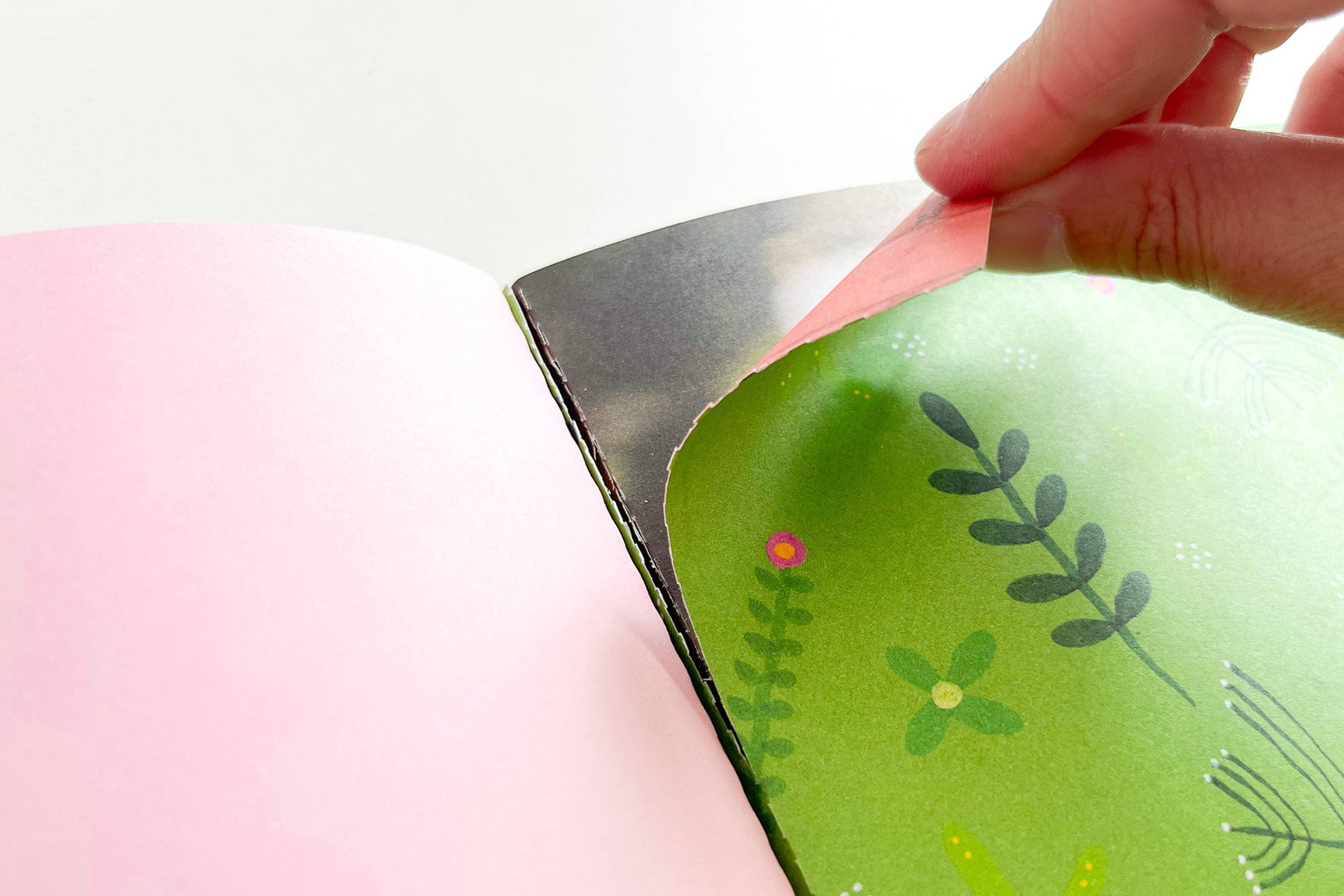 - One side of each sheet features artwork, while the other side is a solid color or simple texture