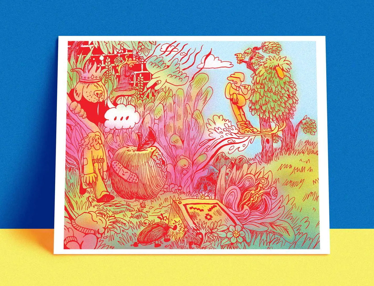 Remember that dream you had last night? This is a visual representation of the back of my mind, full of silly lil fellas and exploding colors. I hope you enjoy finding all the small little details I included when you give this print a wonderful new home!