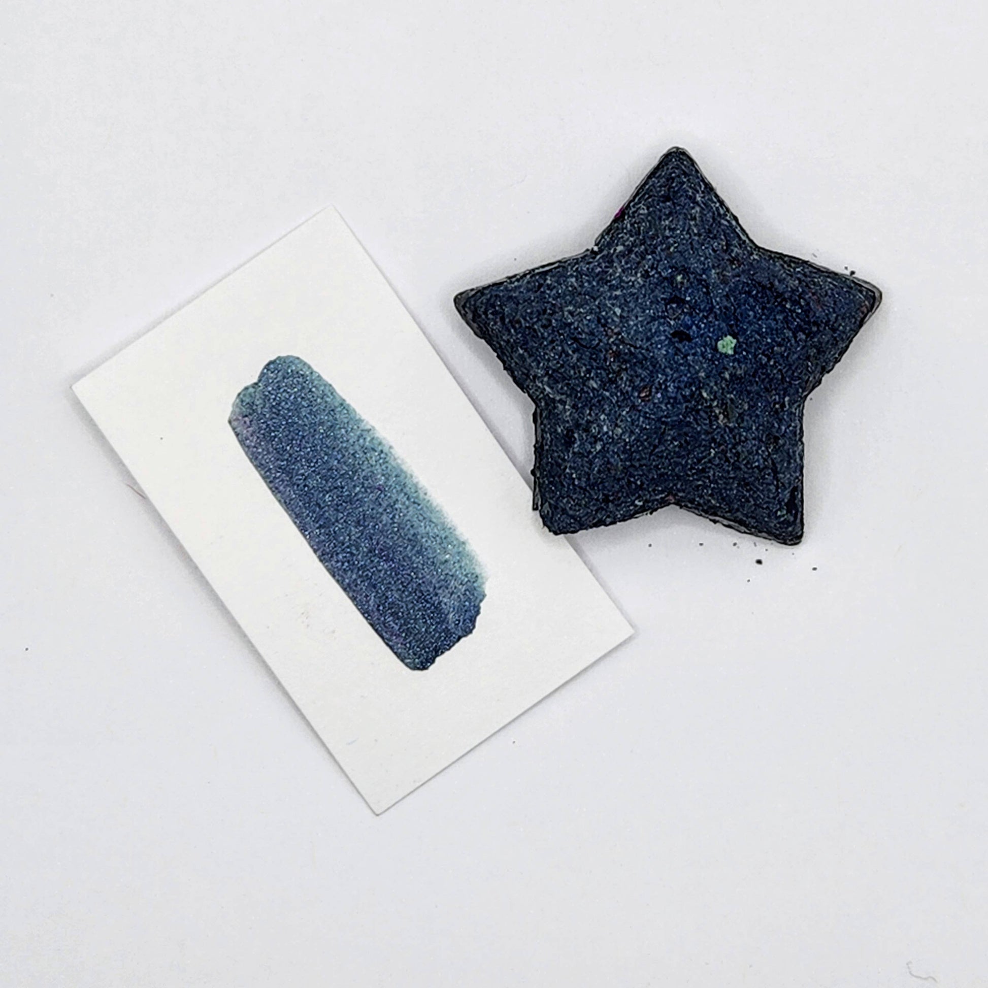 Dramatic blue ink stone with mica sparkle. Water activated dye+pigment ink hybrid, great for travel and controlling ink saturation. Can be used with brush. To use our ink stones, place the stone in a small dish or palette, simply add a couple drops of water or a wet brush to a flat portion of the stone, allowing the stone to hydrate and activate the ink. That's it! Also, you can use the entirety of the stone - no ink goes to waste!