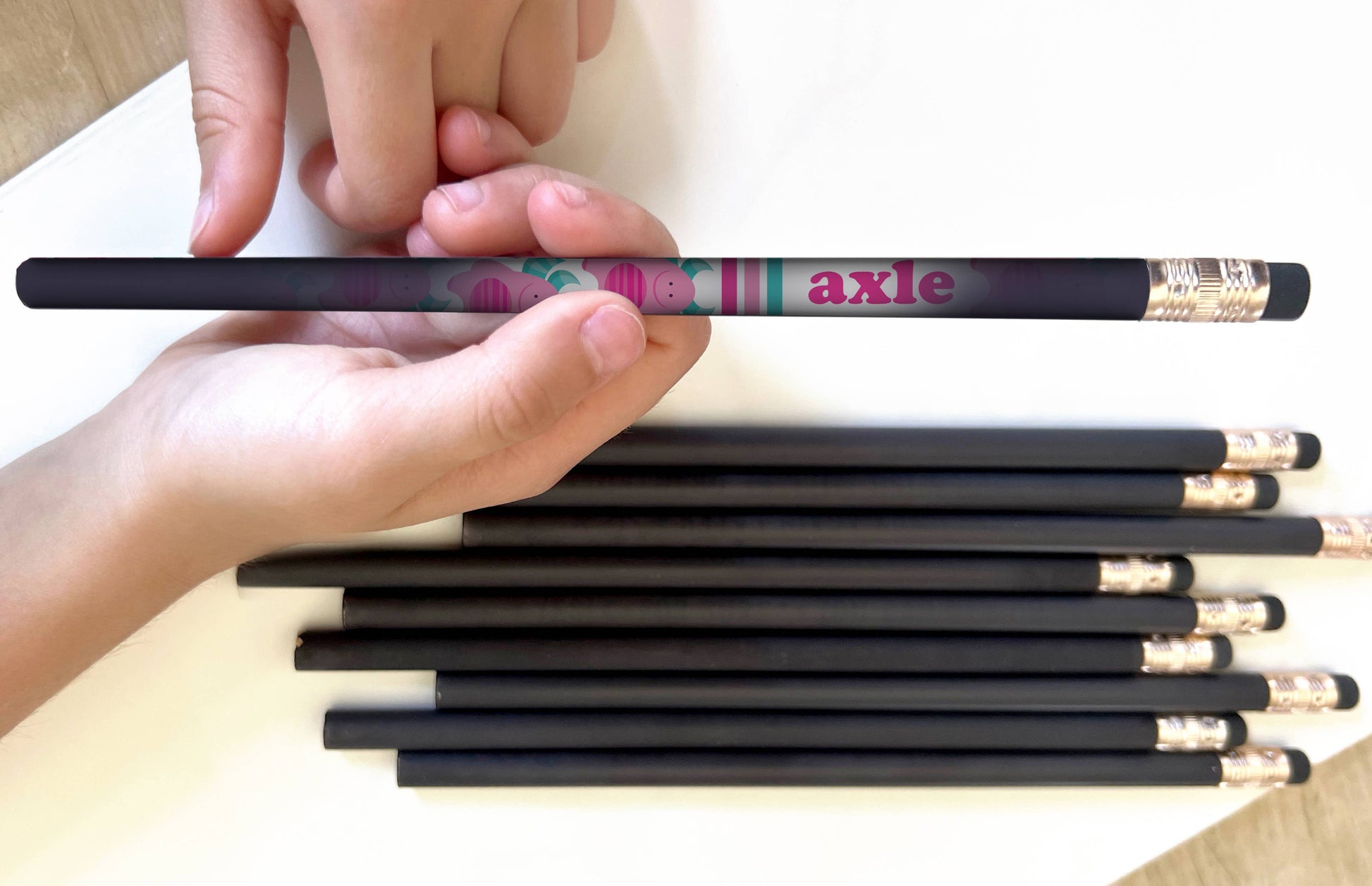 Set of 10 pencils, each with a different monster. Heat from your hand and rubbing friction produces the color change ... these pencils work best at room temperature. Red foil stamped box with hang tab