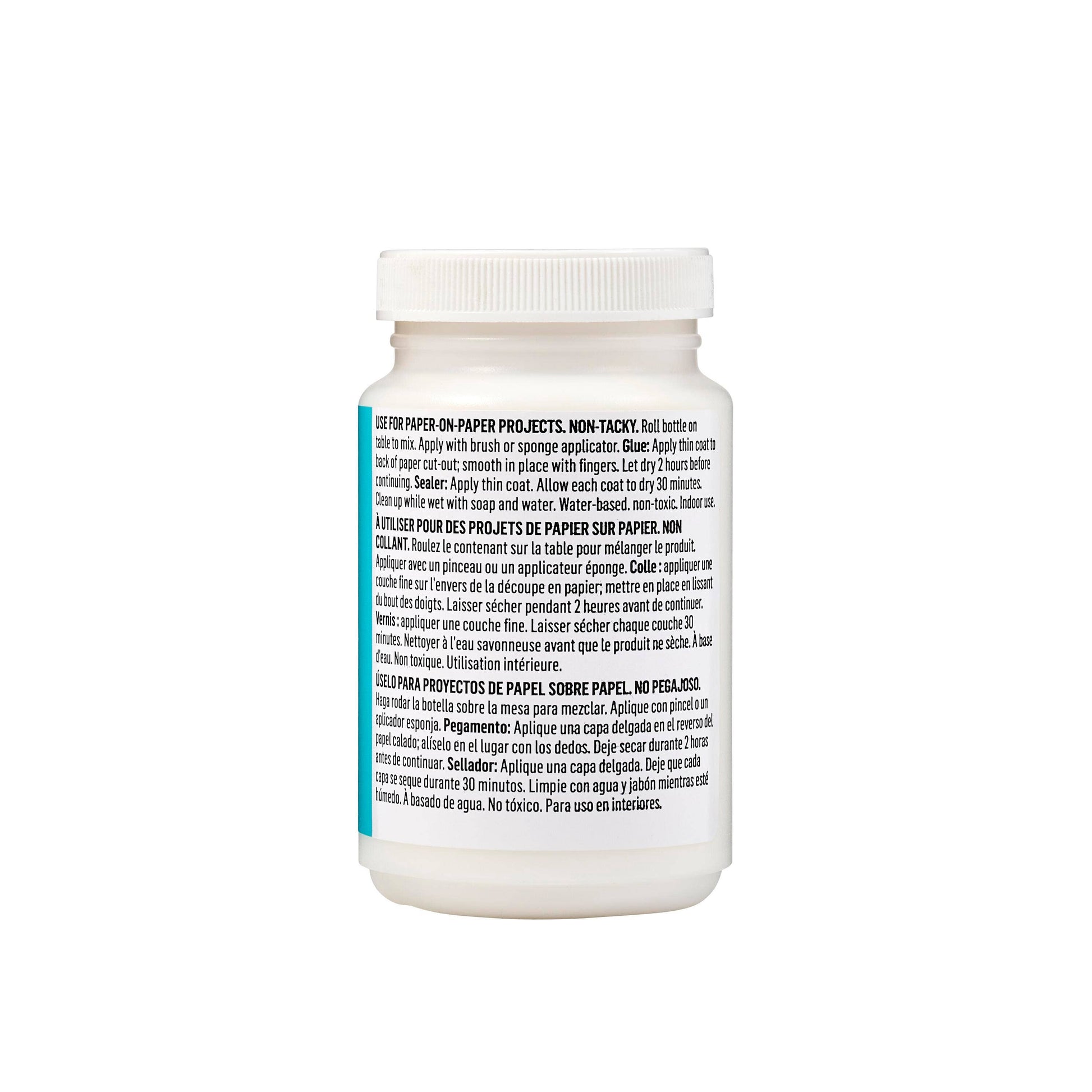 For over 50 years Mod Podge has been America's favorite glue, sealer, and finish. Mod Podge Paper - Matte is quick-drying and dries clear, leaving a smooth, matte finish. Preserve the beauty of your decoupage paper projects and more with this multi-purpose, all-in-one sealant, glue, and finish. Use this decoupage glue to create decoupage tissue paper projects as well as projects using wood, fabric, plastic, and canvas! This handy decoupage formula is great for all your paper projects and is acid-free and non-toxic. Let your creativity come alive with the limitless possibilities of Mod Podge Paper - Matte.