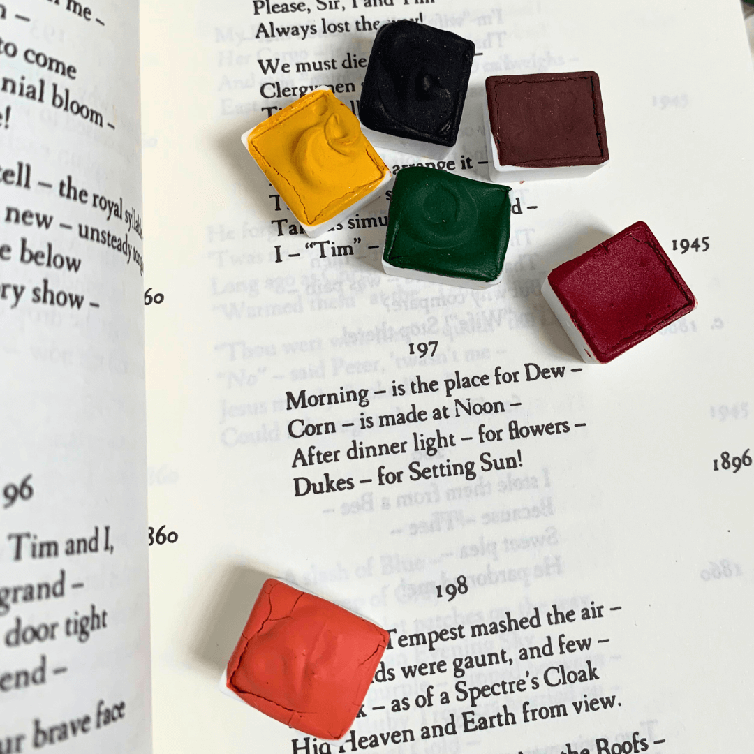 Daffodil is a bright, warm yellow that evokes the daffodils that Emily Dickinson regularly discusses in her poems. A summer shade, essential to your palettes!