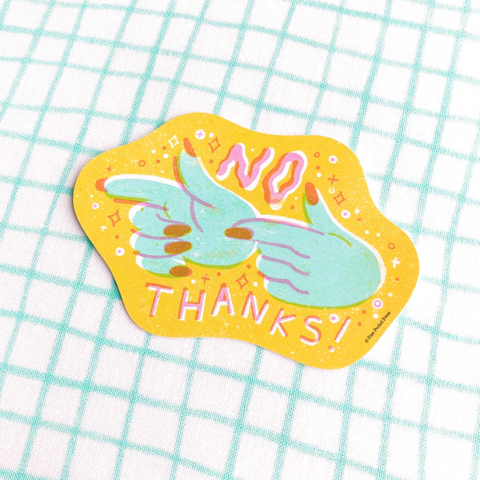 Whether you’re saying “no thanks” to unsolicited advice from random strangers, another work project, or traditional gender norms, this bright and bold sticker is here to help you get your message across.