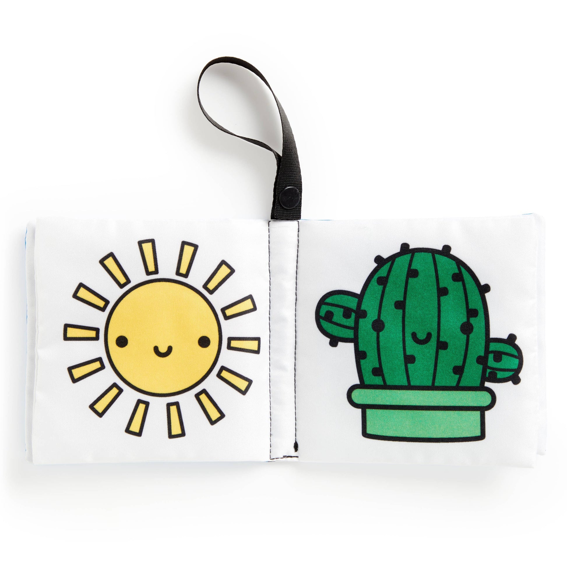 -Soft fabric book clips to baby’s stroller