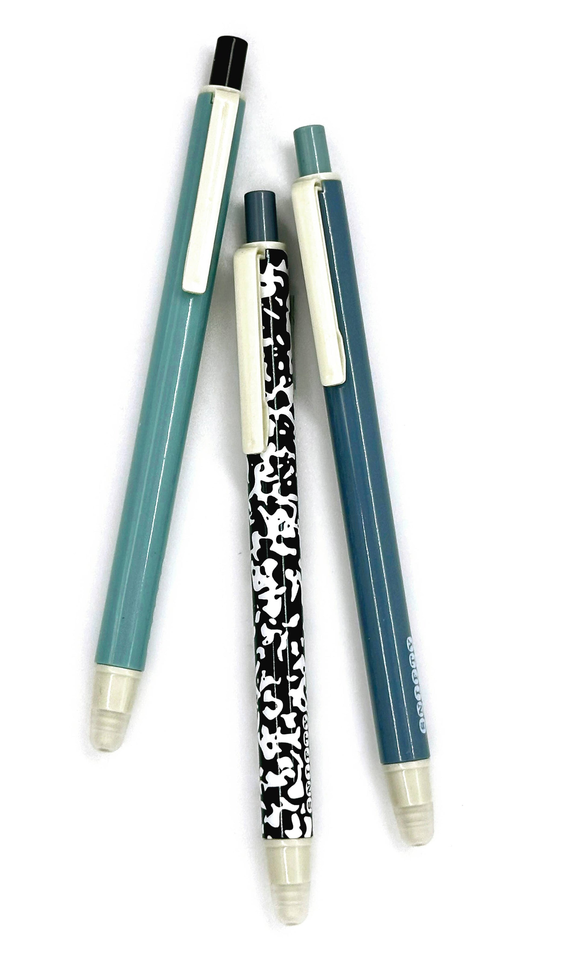 Mistakes are proof you are trying ... but not everybody needs to know! Our beautifully packaged ERASABLE gel pens have cool retro colored barrels and erasable black gel ink. Just write and then retract the nib to erase with the silicone tip... it couldn't be easier! Set of 3 pens per box.