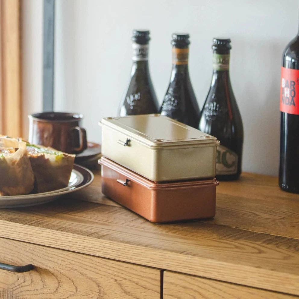 Steel Storage Box with flat lid, made from one piece of steel, resulting in no sharp edges. Can be stacked securely due to the negative / positive imprints on the top and underside. Use for art supplies, make-up, nail polish, teas, travel documents - the possibilities are endless.